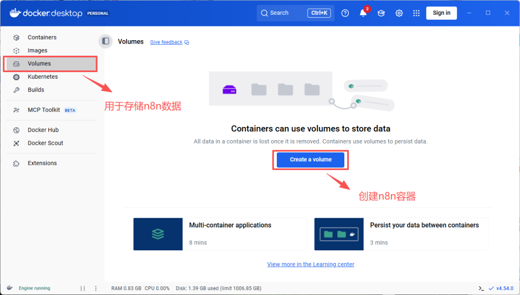 在Docker 中创建一个容器(Volumes),容器名:n8n_data