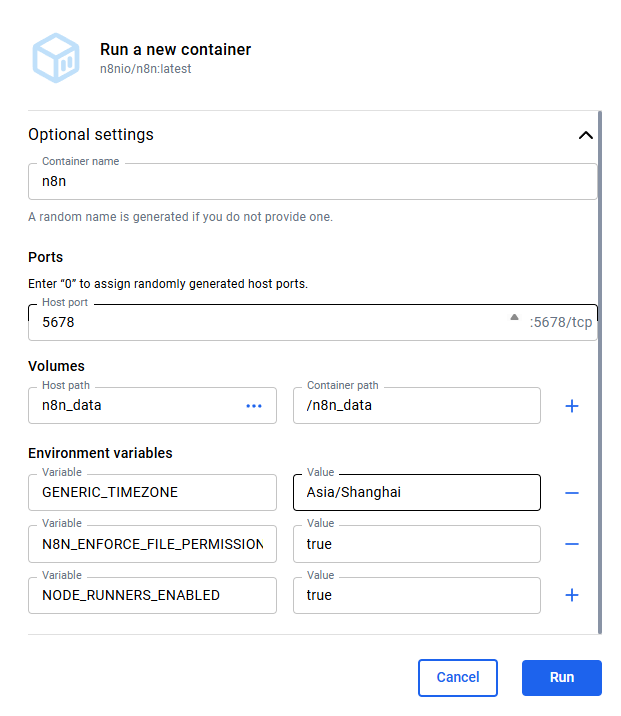 安装成功后,第一次打开需要设置n8n,参数如下👇