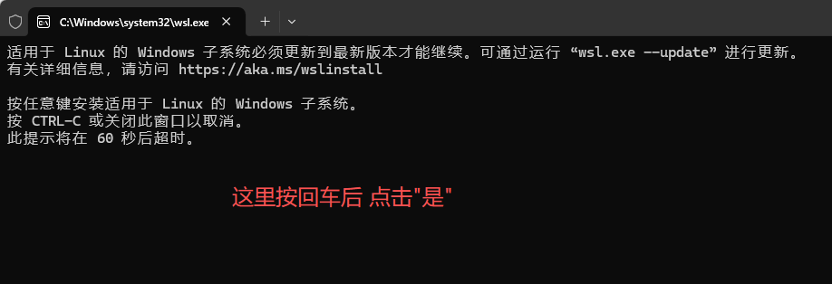 如果这个弹窗错过了,就win+R调出运行窗口输入wsl.exe –update进行安装即可,国内下载速度会有些慢,推荐使用wsl –update –web-download这个命令,此时网络就会通过Github下载